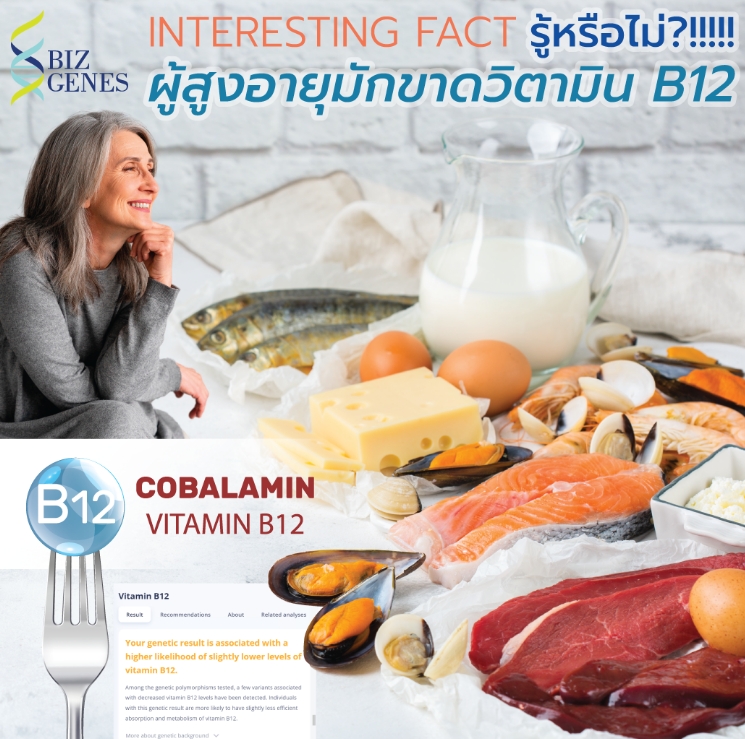 ดังนั้น คุณควรตรวจเช็คระดับวิตามินบี 12 อยู่เสมอ เพื่อป้องกันภาวะการขาดวิตามิน นอกจากนี้ การตรวจ DNA จะสามารถทำให้คุณทราบระดับความต้องการของวิตามินบี 12 รวมทั้งวิตามินและสารอาหารอื่นๆ ที่เหมาะสมสำหรับคุณ เพื่อสุขภาพที่ดีของคุณในระยะยาว